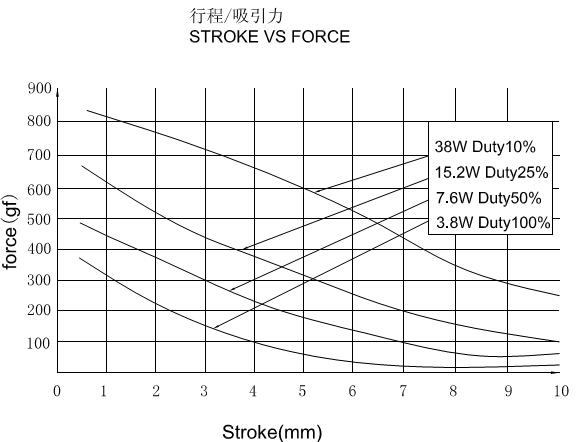 二、電磁鎖U0837S行程和力量曲線圖: